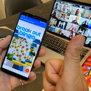 Break Out Bingo is a fast-paced, virtual icebreaker that turns networking into a game. Guided by a friendly host, participants join breakout groups to ask pop-up questions and discover surprising facts about each other. With each round, everyone connects in new ways, scoring points and laughing their way to BINGO!