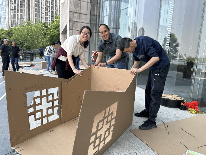 Teams receive plans and materials to construct a rickshaw in record time. Success requires clear communication, task division and parallel working. Once built, teams unleash their creativity, decorating their rickshaw to stand out from the pack. The grand finale is a fun race where speed, control and teamwork decide the winner.
