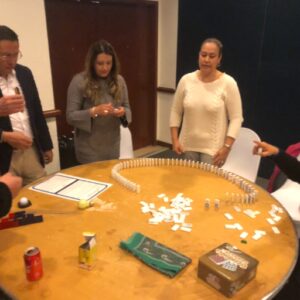 The Domino Effect promotes creative problem solving, teamwork and attention to detail. Teams learn to plan, prototype and adapt under pressure. Within teams, individuals must communicate clearly and contribute actively to a shared vision. Between teams, alignment and cooperation are essential for the full chain reaction to work. The activity mirrors real-life collaboration, where different departments or project groups must stay aligned to achieve success. The final result is a rewarding visual display that represents the power of unity and precision. It’s a hands-on way to reinforce the importance of trust, communication and process improvement in any organisation.